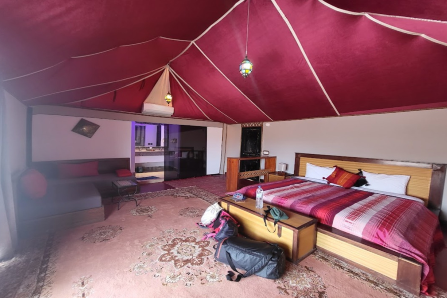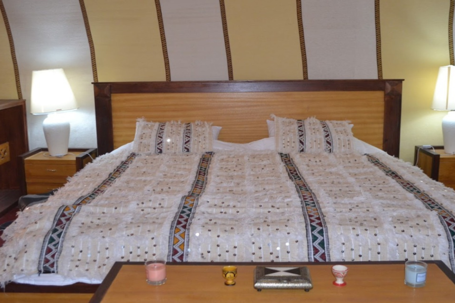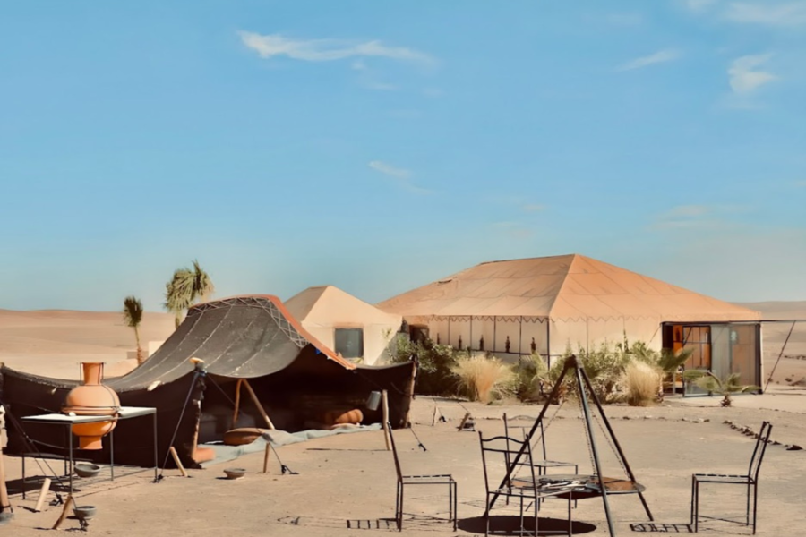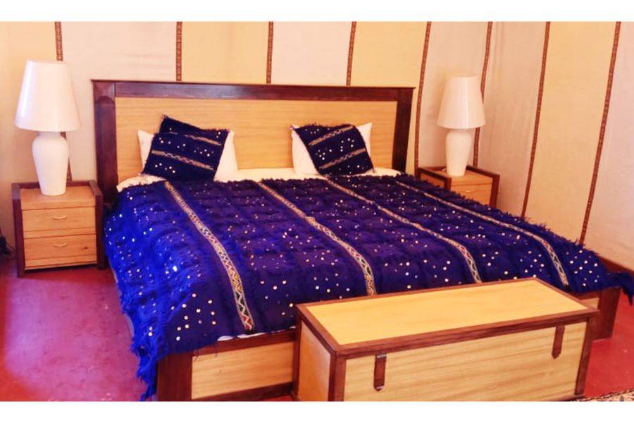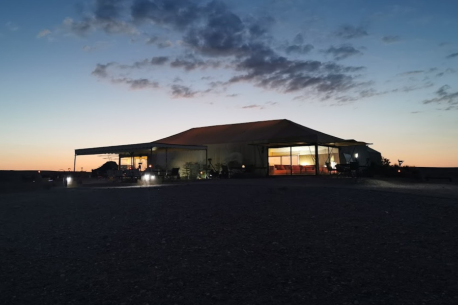 Sea bienvenido en el campamento del desierto y disfrute de una noche en un vivac típico.