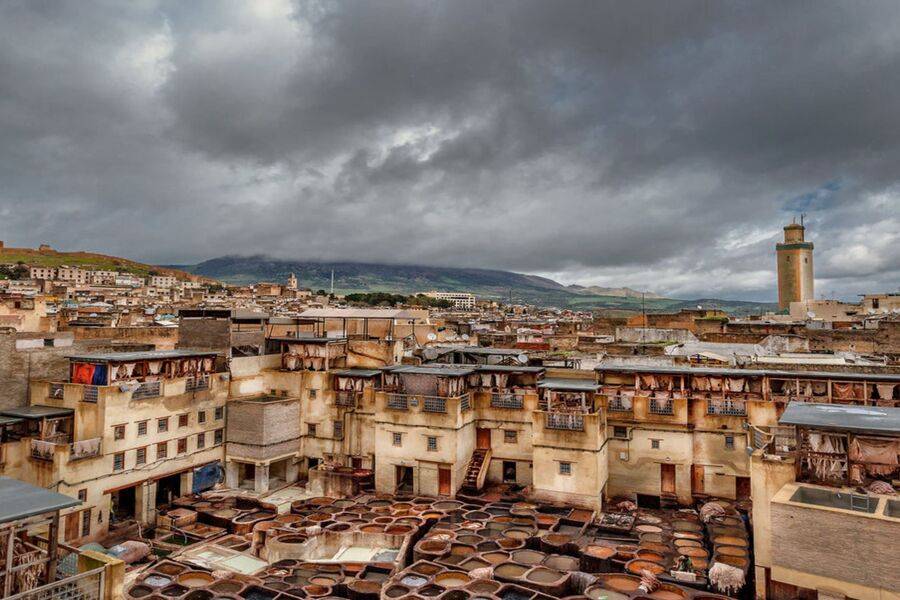 Préparez-vous à une expérience olfactive intense ! Les tanneries de Fès fonctionnent selon des méthodes ancestrales inchangées depuis des siècles. Depuis les terrasses environnantes, vous observerez les artisans travailler dans d’immenses cuves remplies de teintures naturelles : jaune safran, rouge coquelicot, bleu indigo, marron henné. Le spectacle est saisissant, presque irréel. On vous tendra probablement une branche de menthe pour atténuer l’odeur puissante du tanin. Acceptez-la avec le sourire, vous en aurez besoin !