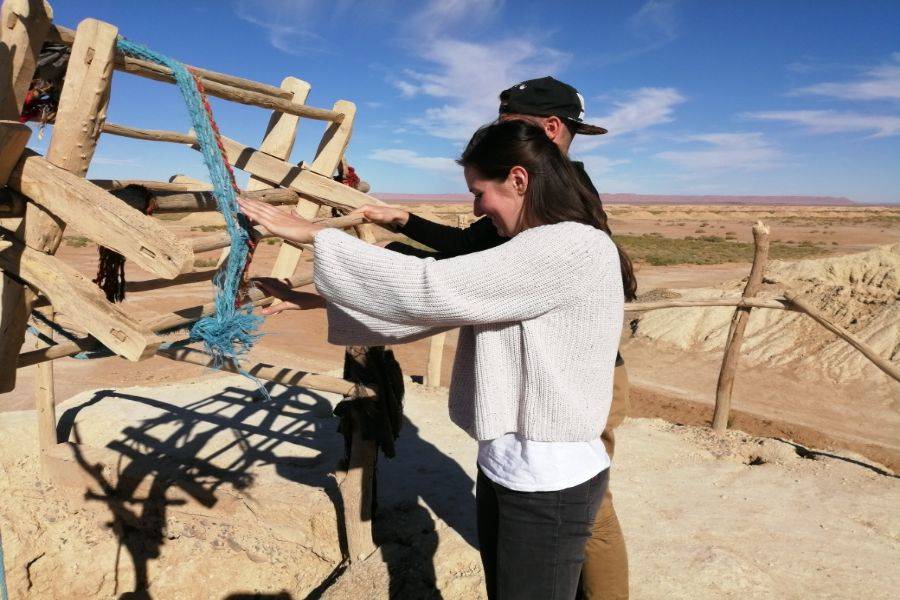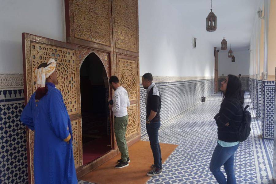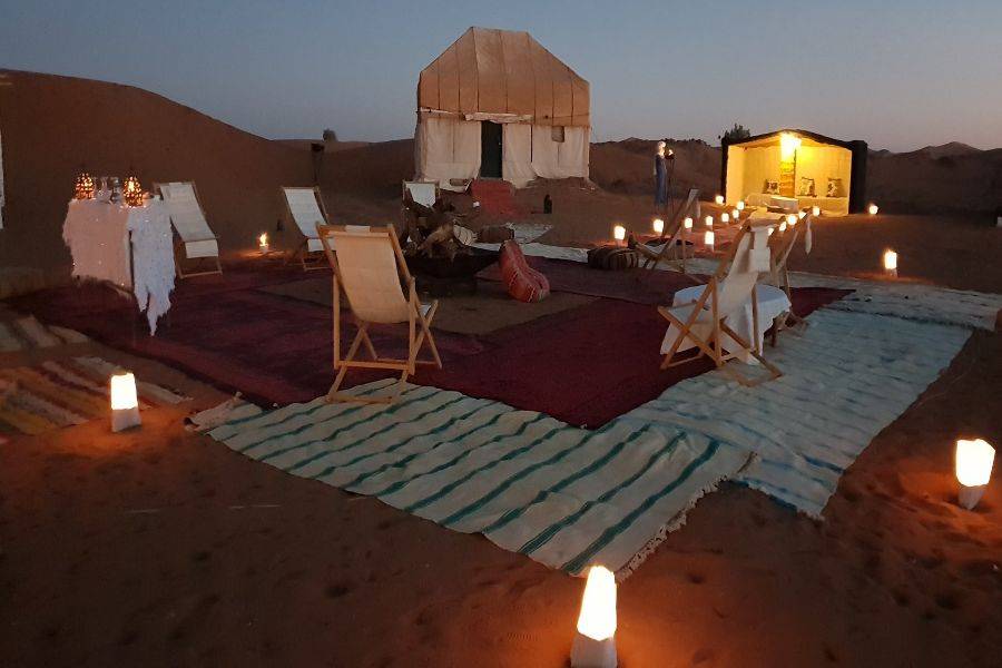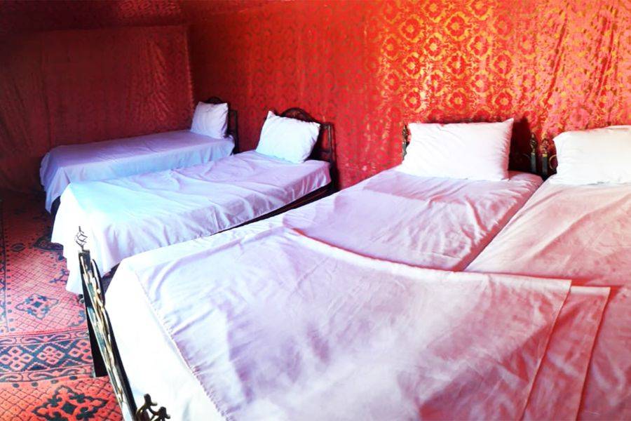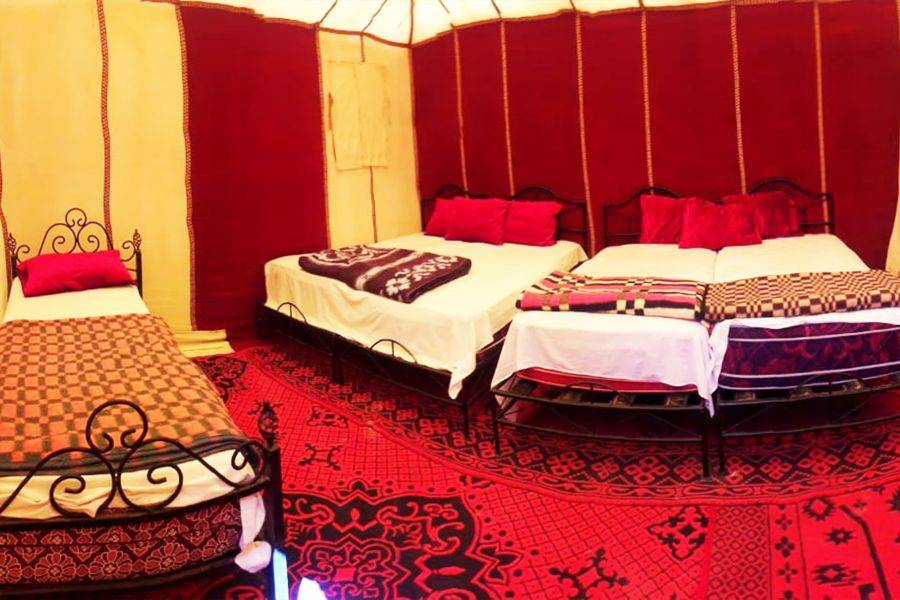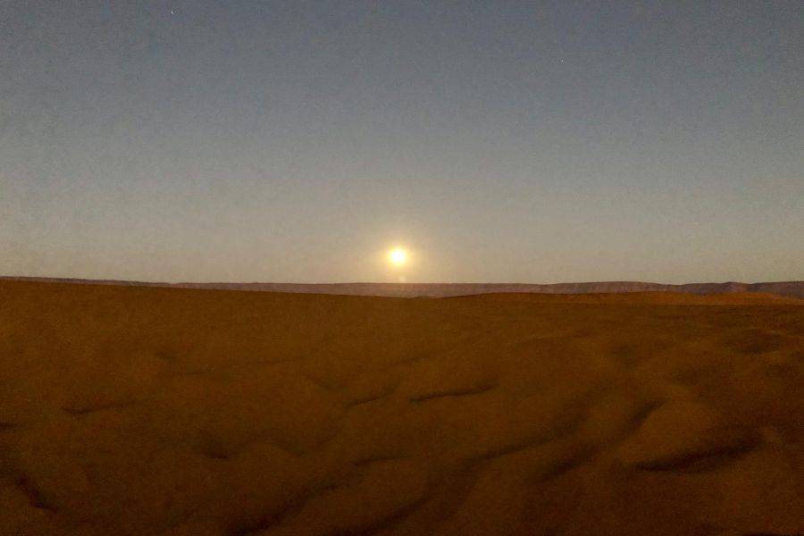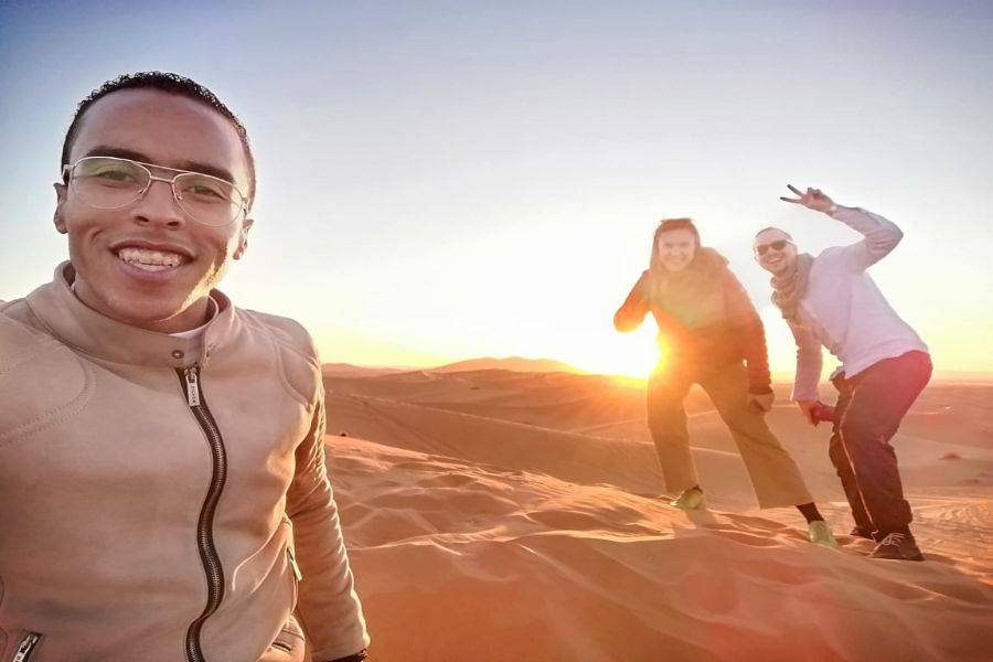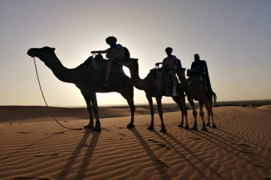 La primera parada será en Azrou, donde disfrutaremos de una caminata de descubrimiento para disfrutar del bosque y los monos de Berbería. Llegaremos a Midelt, que es un pequeño pueblo hermoso y limpio famoso por la producción de manzanas. Pasaremos por el valle de Ziz, que tiene muchos oasis al lado de la carretera. La segunda parada es en Errachidia, famosa por Kaser Souk, que es un mercado tradicional y es el lugar más antiguo de esta ciudad. Conoce gente local con una mezcla de diferentes culturas entre bereber y árabe. Nos detendremos para almorzar en esa ciudad antes de tomar el camino. Saliendo de Errachidia y pasando por un paisaje fascinante, pasaremos por una tierra ancha y un camino espléndido con muchas palmeras Oasis. Pasando por Aoufouss y luego Erfoud para ver los diferentes tipos de montañas que se ven muy diferentes de las montañas que has visto en Marruecos. Llegaremos a Errissani, una ciudad hermosa y acogedora donde visitaremos Moulay Ali Cherif, que es un mausoleo con un jardín tranquilo y hermoso. Nuestra última parada en el primer día será Merzouga, monta un camello para dirigirte a las dunas de Erg Chebbi y conoce a los nómadas locales con una gran bienvenida, disfruta de la noche con un hermoso paisaje de instrumentos nómadas tradicionales y bailes. Luego pase una noche maravillosa bajo el cielo azul oscuro en el amplio desierto marroquí.