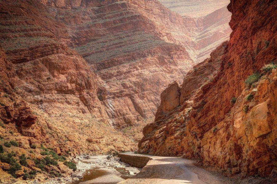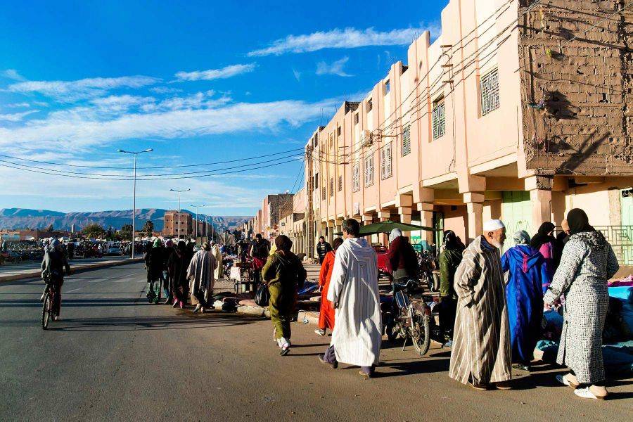 Despiértese por la mañana, relájese y disfrute del tranquilo pueblo mientras disfruta de un delicioso desayuno en el riad, prepárese para emprender el camino hacia otra aventura. Al pasar de Bomalen Dades para ver las otras hermosas gargantas, sorpréndase con la hermosa forma de la montaña y el lugar tranquilo. Nuestra próxima visita será el valle de las rosas, un lugar increíble cada abril y mayo, se recolectan entre 3.000 y 4.000 toneladas de flores silvestres del Valle de las Rosas, y si tiene suerte, se encontrará con este evento para disfrutarlo con la gente local. . Llegue a Ouarzazate mientras observa los cambios del paisaje dentro de la carretera, descubra la ciudad con nuestro conductor, visitaremos el estudio de cine internacional que es famoso por la producción de muchas películas históricas como The Game of The Thrones y más, en vivo Un escenario de película dentro de este lugar, luego lo dirigiremos a Ait Ben Haddou para disfrutar de una media pensión con una deliciosa cena.
