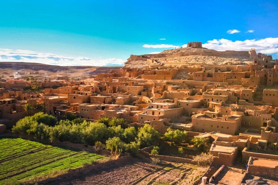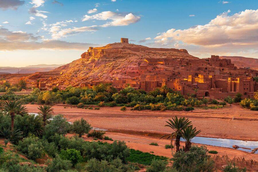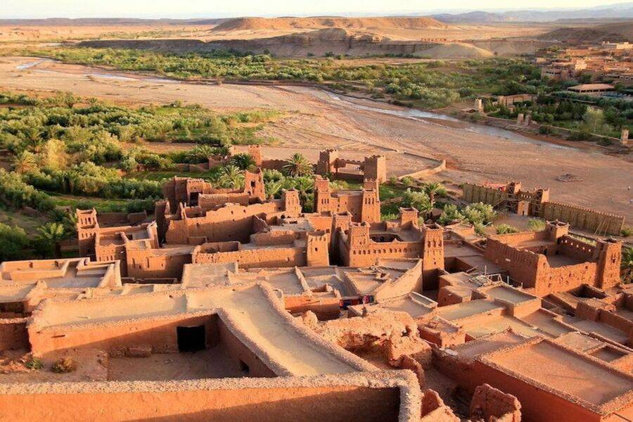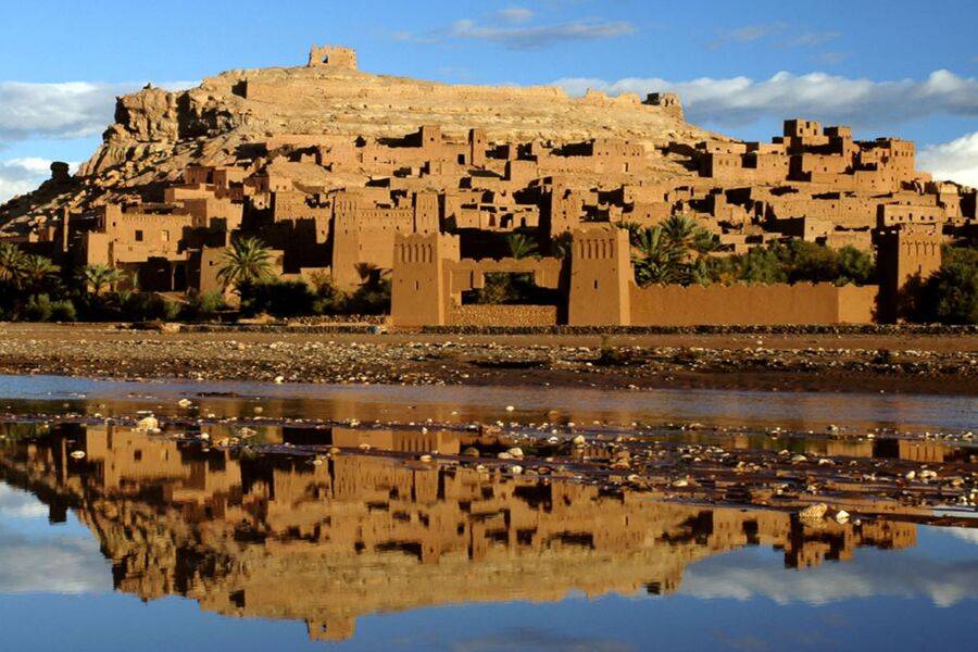 Continuaremos hacia Ait Ben Haddou, una de las maravillas geológicas del mundo, que ha permanecido durante milenios como un universo aparte. Visitaremos una magnífica fortaleza que sirvió de escenario para películas de renombre como "Lawrence de Arabia", "Gladiador" y "La joya del Nilo". Está formada por varias edificaciones, el ocre del adobe parece mezclarse con la tierra seca, sobre la que una vez fluyó un gran torrente que ahora se ha convertido en tierra de cultivo.