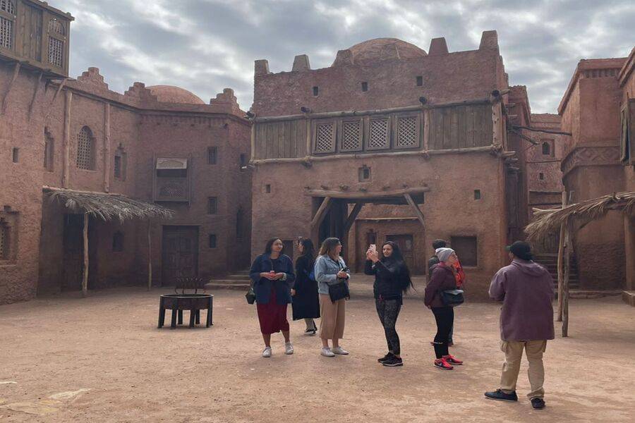 Tras visitar este emblemático lugar, continuaremos hacia Ouarzazate, antigua guarnición de las tropas francesas. Ouarzazate se encuentra en la parte sur del país. Es rica por su agricultura, famosa por los dátiles de sus palmerales, y hermosa por las rosas que crecen en sus orillas y la alheña. Es también el lugar predilecto de grandes cineastas, lo que ha dinamizado económicamente el territorio y ha propiciado la creación de numerosas empresas vinculadas al mundo audiovisual, que dan empleo a muchos de sus habitantes.