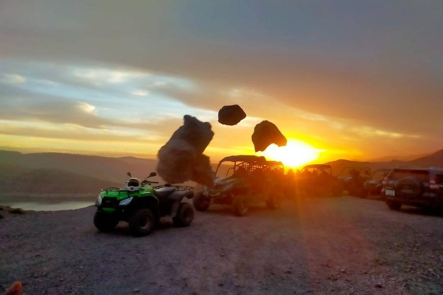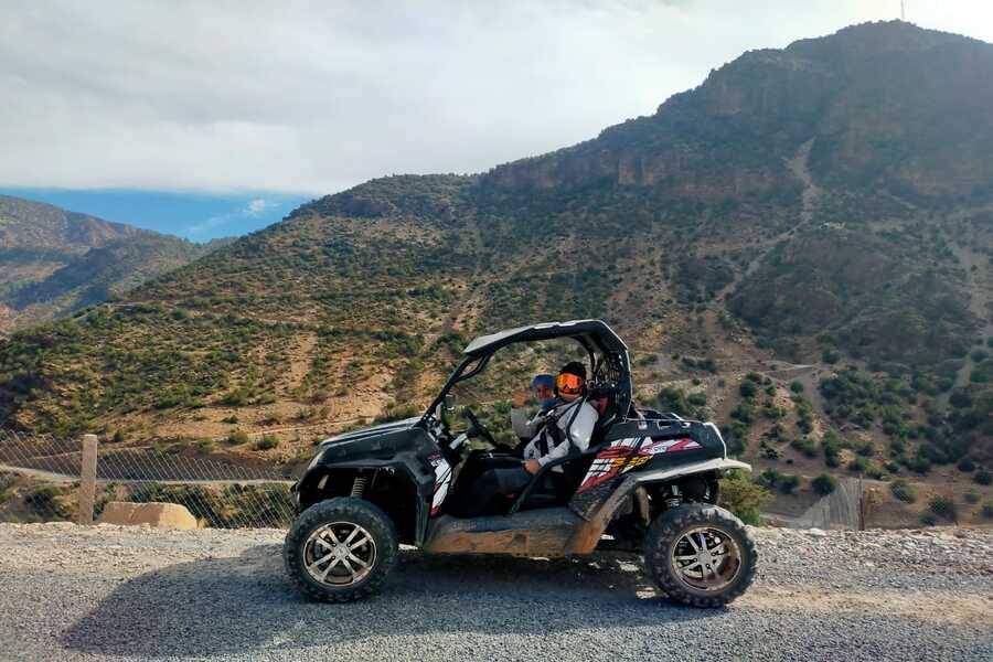 Admira la belleza de la carretera y siéntete emocionado mientras conduces un buggy por el desierto rocoso.